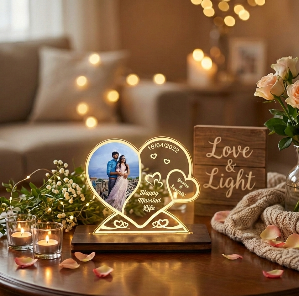Personalized LED Photo Frame Heart Lamp . Custom Couple Photo Night Light 1.0